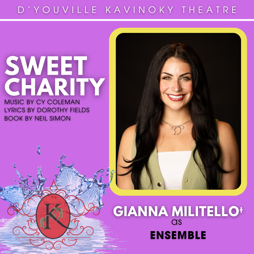 GIANNA MILITELLO (ENSEMBLE/DANCE CAPTAIN) was born and raised in Buffalo, NY, and has had a passion for dance all her life. She graduated in May of 2022 with a Bachelor of Fine Arts in Dance from the University at Buffalo. She has taught and choreographed all styles at numerous studios throughout New York State. After graduating her undergrad, she accepted her first professional dance contract with Norwegian Cruise Line where she toured Alaska, Hawaii, French Polynesia, Australia, and New Zealand. Since her time at sea, she has performed in local productions such as Hello Dolly and Grease.