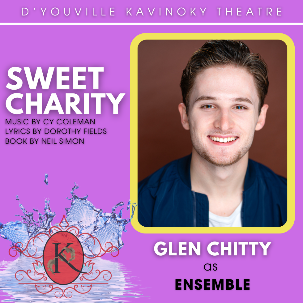 GLEN CHITTY (ENSEMBLE) (He/Him) is excited to be a big spender in Sweet Charity, a role any theatre actor wishes to play onstage and off. Favorite credits include Newsies (Jack Kelly) and Grease (Doody) at Shea's 710, The Hobbit (Bilbo Baggins), White Christmas (Phil Davis), The 39 Steps (Richard Hannay), Renasence (Father), and The 25th Annual Putnam County Spelling Bee (Chip Tolentino). Sending love to those he loves. You can see what’s next @glen.chitty on social media!